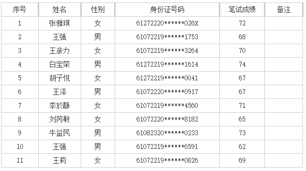 根据公告发布、报名、资格审查、笔试等环节,现将笔试成绩及进入面试环节人员名单公告如下: