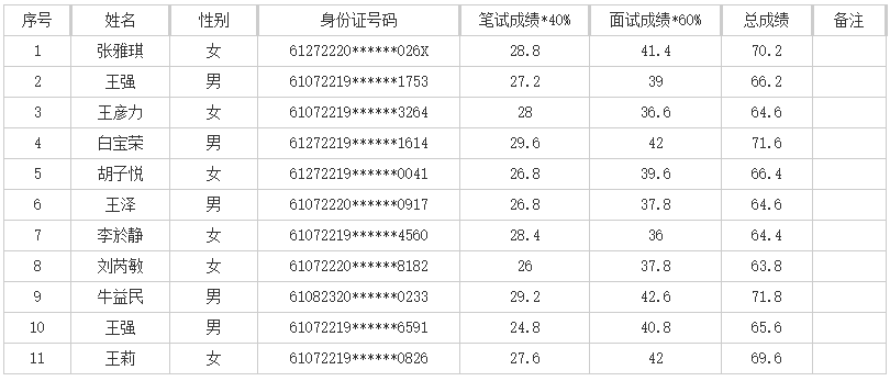 根据公告发布、报名、资格审查、笔试、面试等环节,现将总成绩及进入体检、考察环节人员名单公告如下: