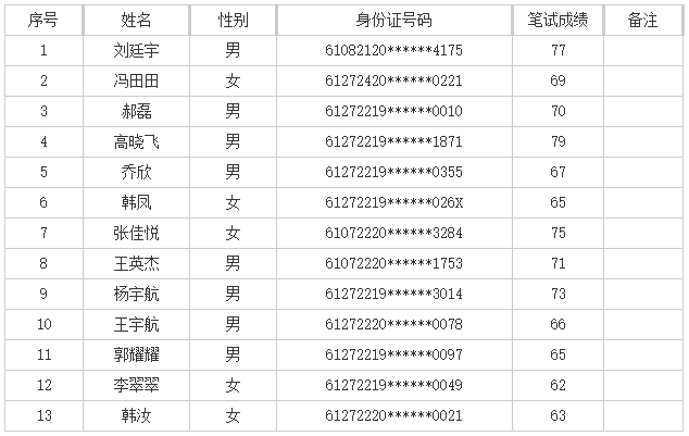 根据公告发布、报名、资格审查、笔试等环节,现将笔试成绩及进入面试环节人员名单公示如下: